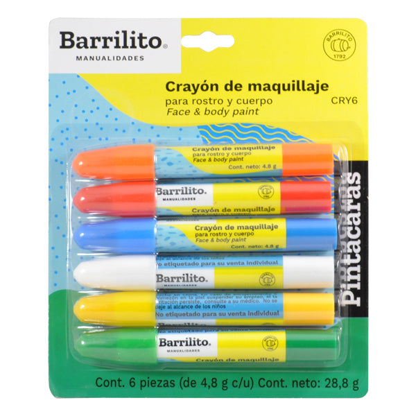 Paquete con 6 crayones de maquillaje, para rostro y cuerpo.