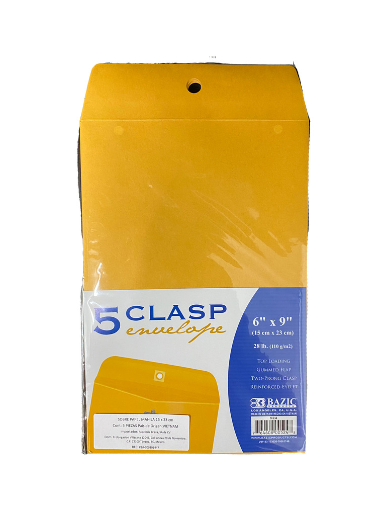 Paquete con 5 sobres manila tamaño esquela (6" x 9").