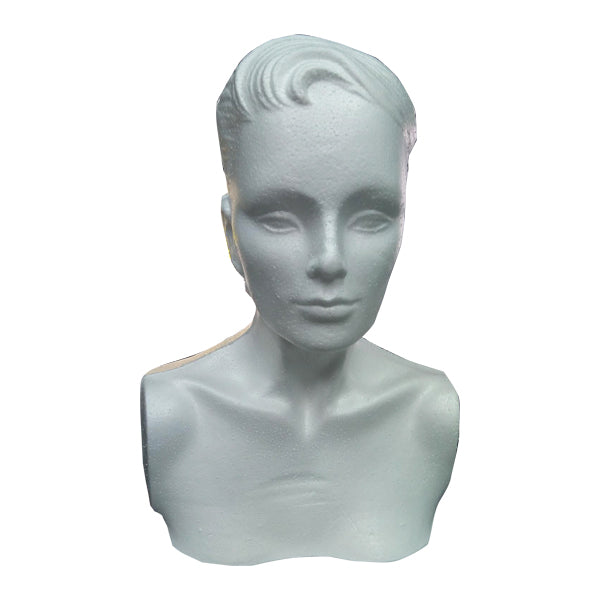 Cabeza con busto de unicel, mide 42 cm de alto x 28 cm de base