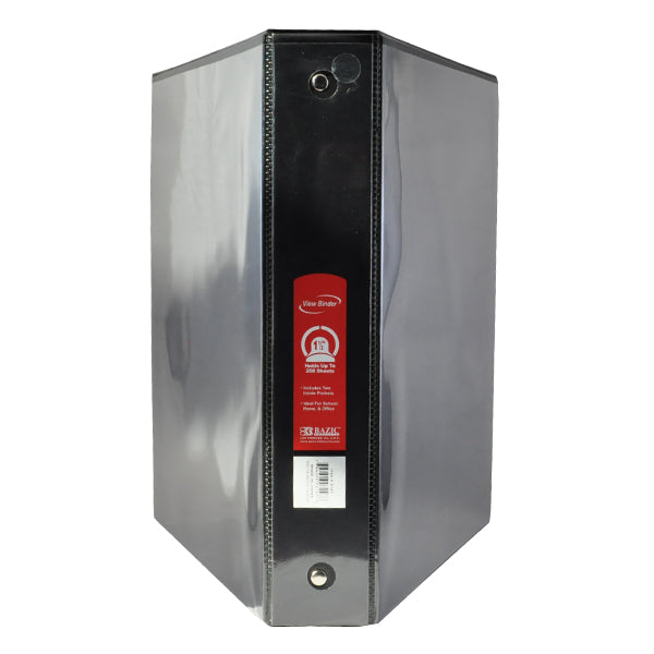 Carpeta color negro de 1 1/2" de ancho de 3 aros con mica transparente.