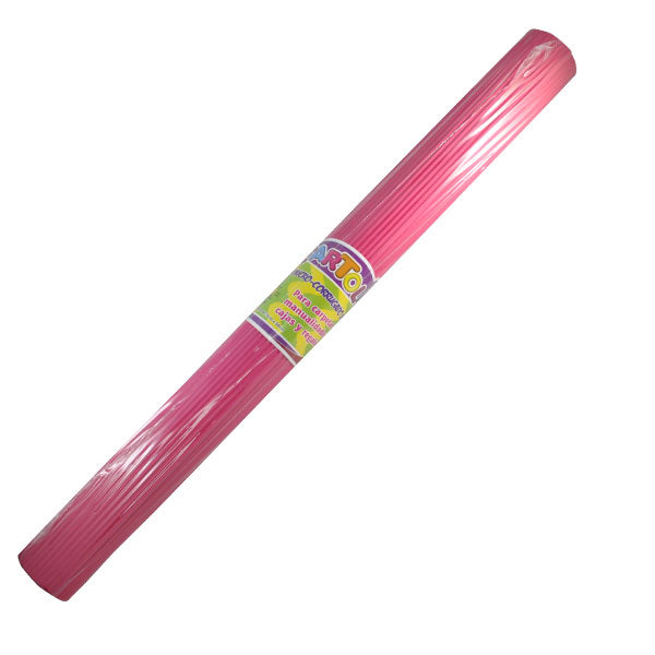 Papel corrugado color rosa, mide 50 cm x 70 cm.