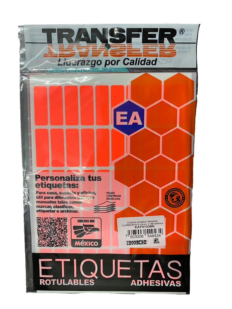 ETIQUETA BASICA CONTINUA # 6 NARANJA TRANSFER