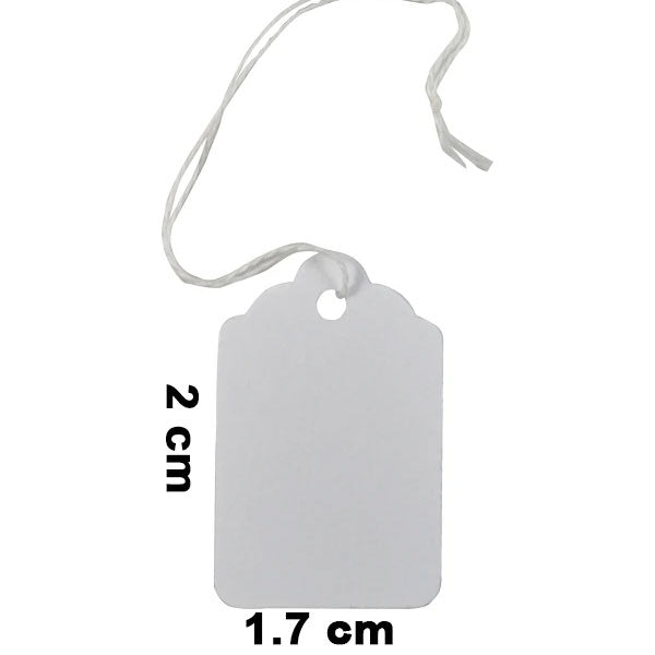 100 etiquetas para colgar, miden 1.7 cm x 2 cm