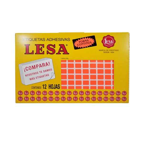 Paquete con 12 hojas con etiquetas continuas en forma rectangular color rojo del no.01