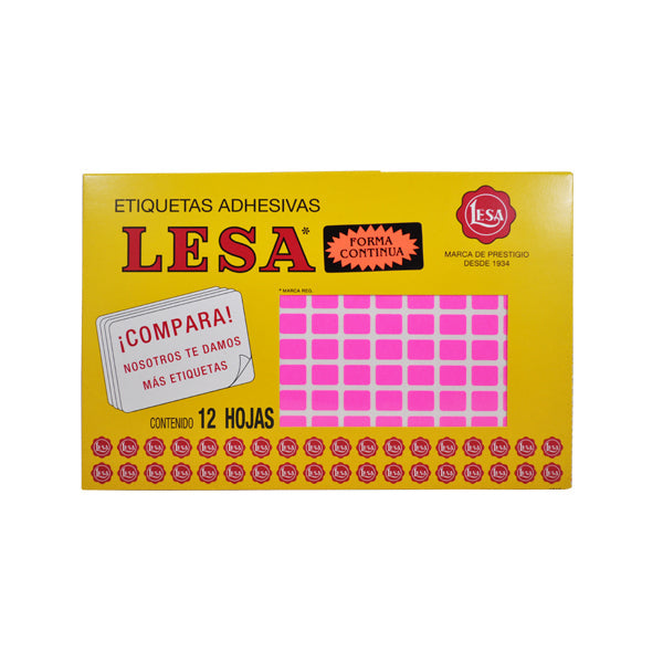 Paquete con 12 hojas con etiquetas continuas de forma rectangular color rosa del no.01
