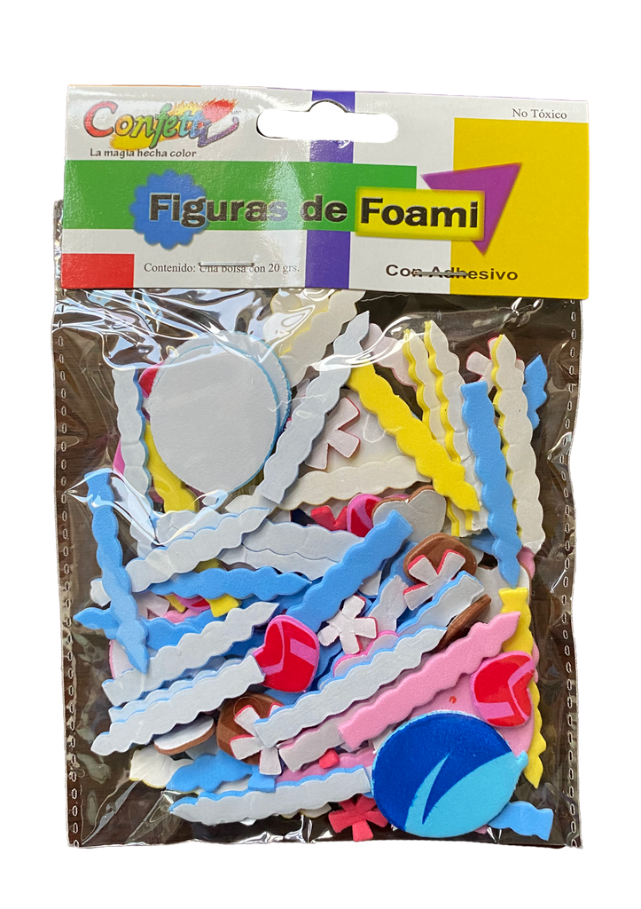 Bolsa con 20 gramos de figuras de Foamy con temática cumpleaños