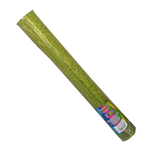 Rollo de foamy color verde limón con diamantina, medida 43 x 55 cms.