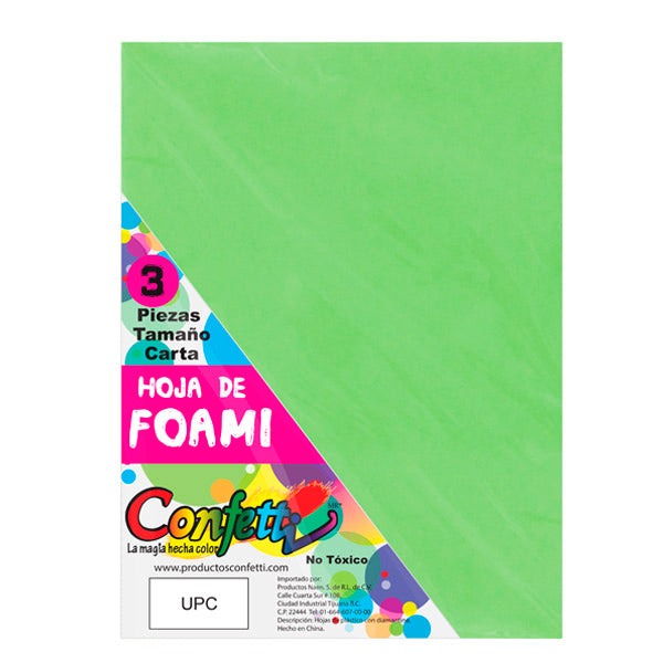 Foamy tamaño carta con 3 piezas de color verde claro.