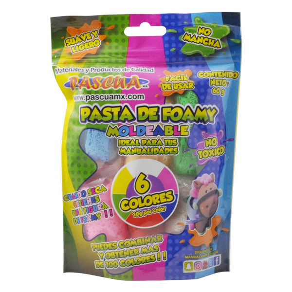 FOAMY MOLDEABLE 60 GM 6 COLORES PASCUA