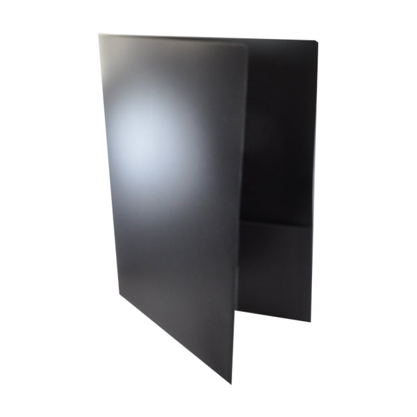 Folder tamaño carta de plástico con broche mariposa y con bolsillos.