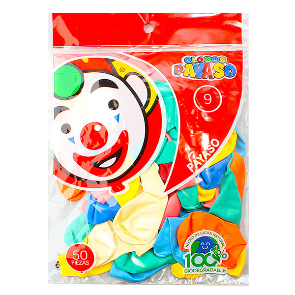 GLOBO PAYASO #9 SURTIDO 50 PZ FABRICAS SELECTAS