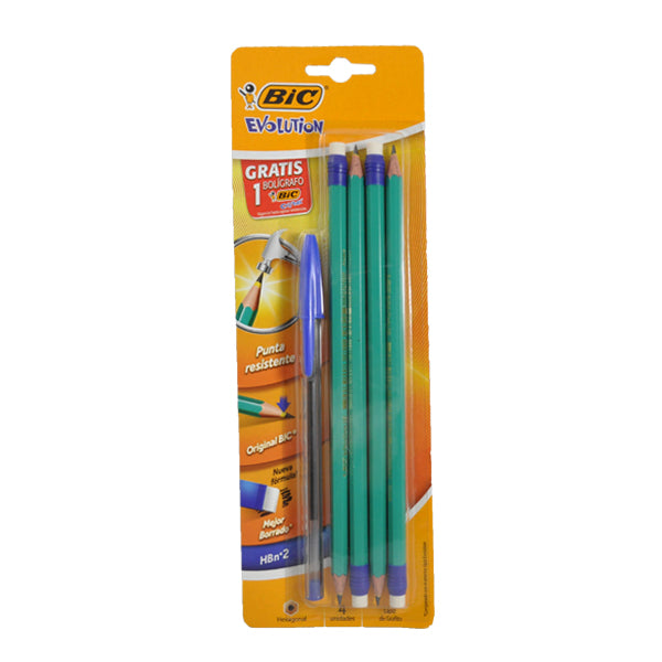 LAPIZ EVOLUTION #2 HB 4 PZ + PLUMA BIC MNK