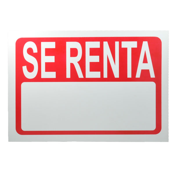 Letrero de acrílico con la frase Se Renta, mide 23 x 33 cm.