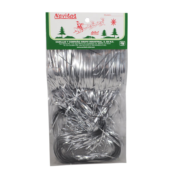 Lluvia metálica color plata, mide 40 cm largo x 10 cm ancho
