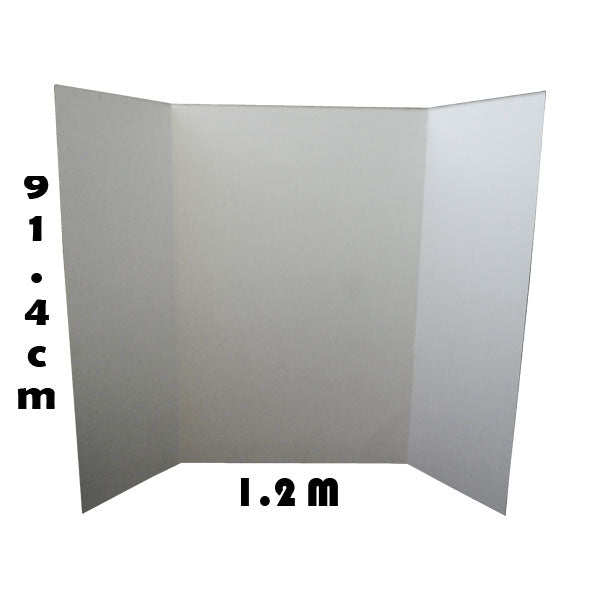 Mampara de cartón color blanco, mide 91.4 cm x 1.2 metros abierta