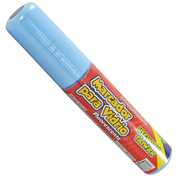 Marcador para vidrio color azul cielo, contiene 25 gramos.