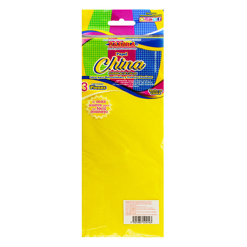 Paquete con 3 pliegos de papel china color amarillo canario.