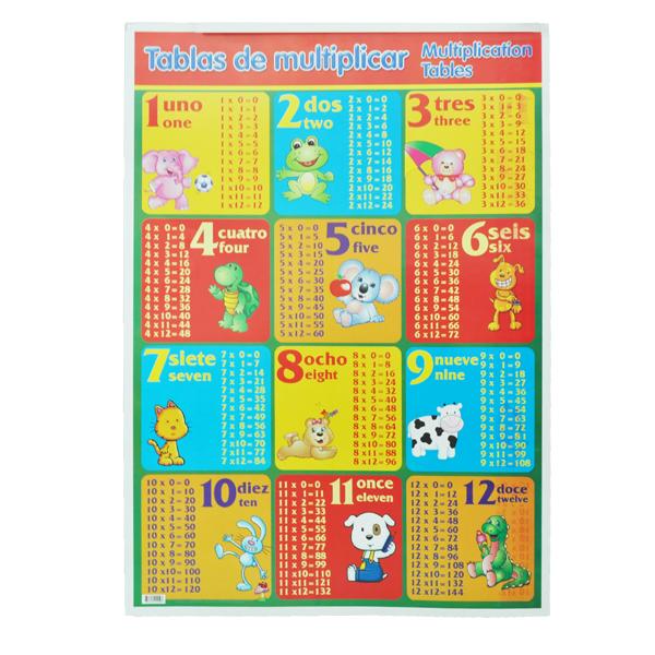 Póster didáctico con las tablas de multiplicar, mide 70 cm x 50 cm