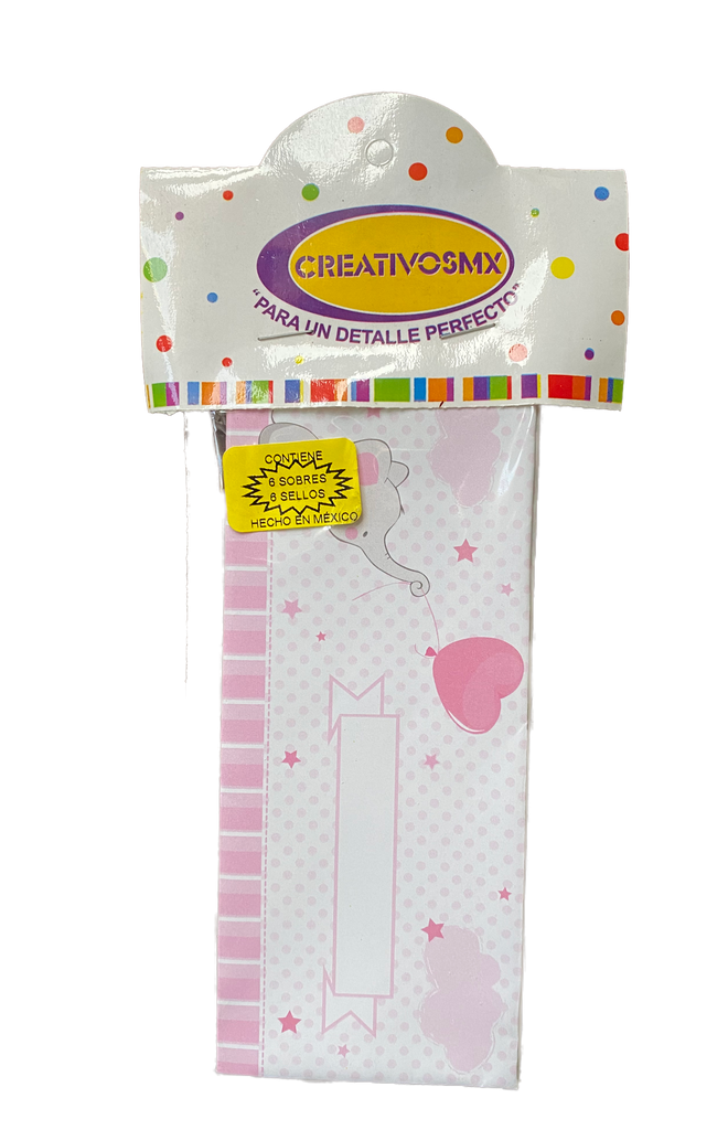SOBRE BABY SHOWER NIÑA 16 X 7 6 PZS SDB CREATIVOS