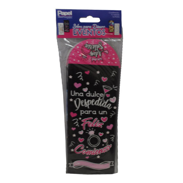 Paquete con 12 sobres para dinero "Despedida de soltera", mide 17 cm x 7.5 cm