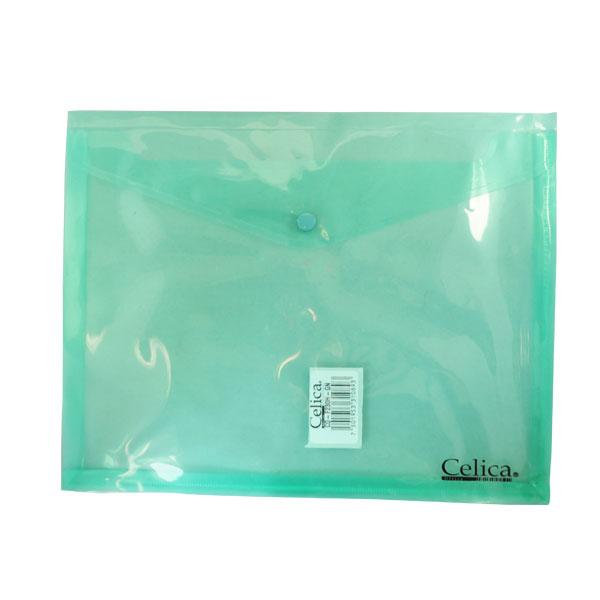 Sobre de plástico color verde con cierre de botón, tamaño carta