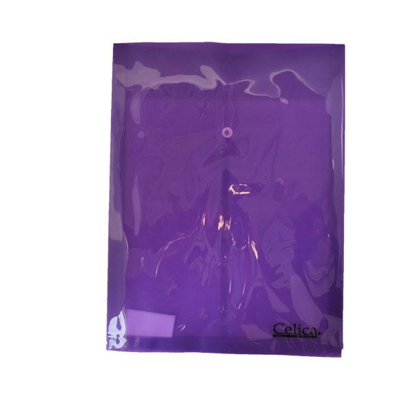 Sobre de plástico color morado con cierre de hilo, tamaño carta.