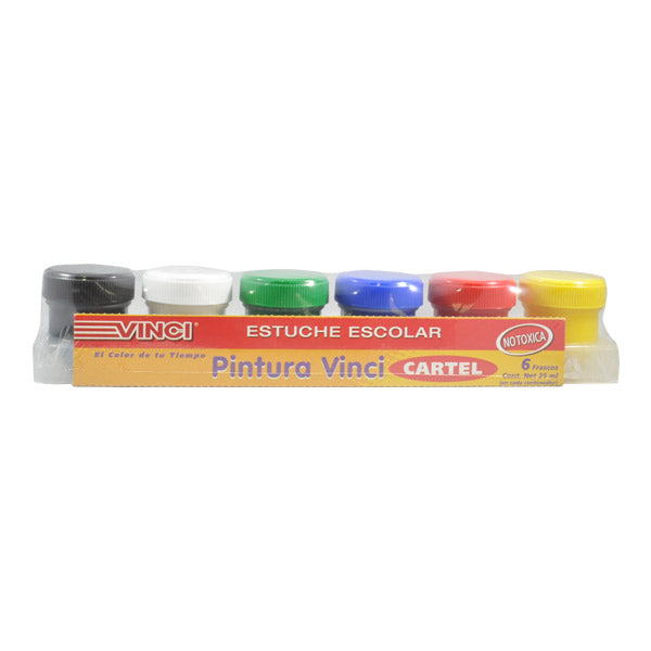 Paquete con 6 temperas para cartel en variedad de colores.