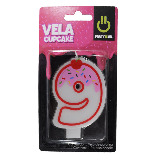 Vela para pastel en forma de cupcake del número 9